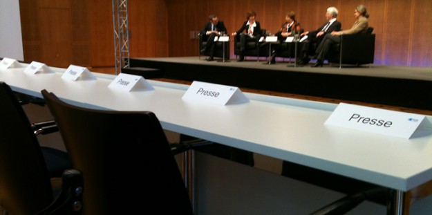 Fünf Experten sitzen auf den Panel und sollen mit dem Publikum diskutieren. Aber erst darf jeder sieben Minuten einen Vortrag halten. Viel davon ist schwer nachvollziehbares Zahlenmaterial, auch komplexe Powerpoint-Folien (Wer hier im Publikum kann die auf Anhieb verstehen?). Hier nur die (wenigen) klaren Botschaften:
